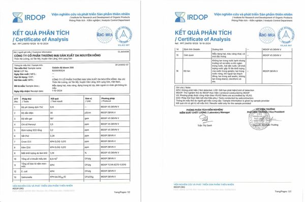 COA theo từng lô hàng (Greenifi Gelatin - Bloom 200)